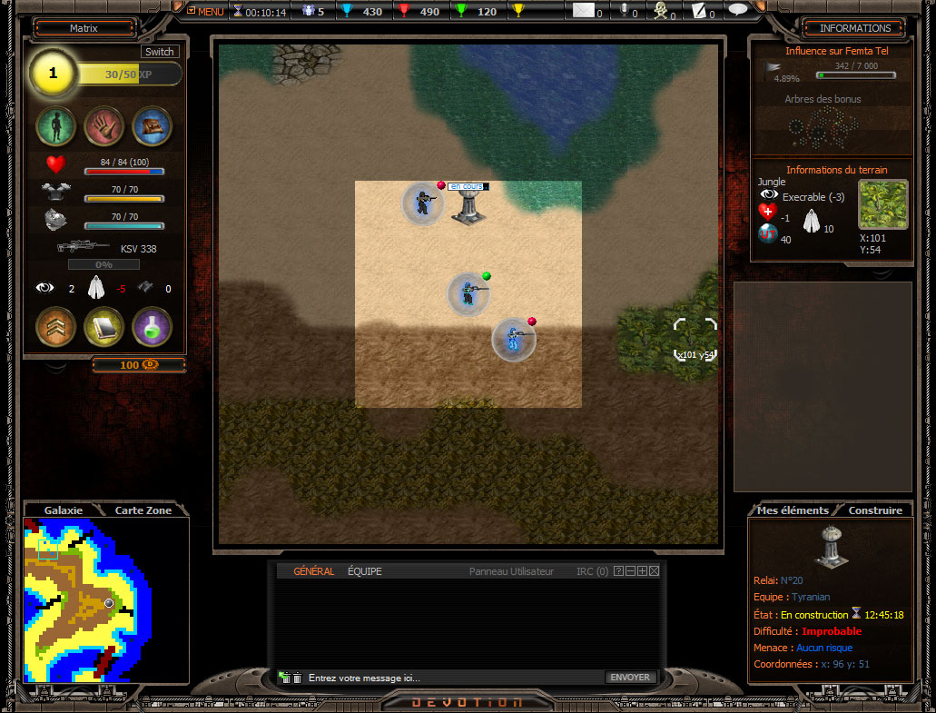 Dévotion alias "DVO", est un jeu de role par navigateur gratuit et en ligne en PHP. Mais c'est avant tout un jeu de conquYote et de stratégie à travers la galaxie! Entièrement gratuit et multijoueurs, de type "wargame" (littéralement : jeu de guerre) où chacun incarnera le soldat de son choix.