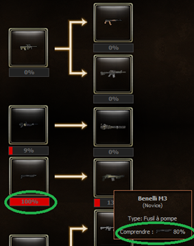 L’évolution va de 0 à 100%. Vous passerez, en fonction de votre % (par tranches de 20%), par différents « grades », de Novice à Maître. Chaque grade (sauf Novice) vous apporte un bonus. Les bonus sont cumulatifs (le Maître possède tous les bonus des grades précédents).